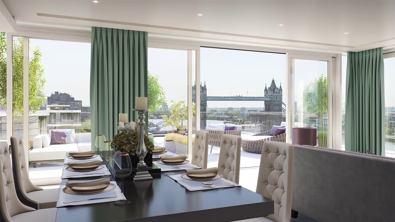 Tower Bridge tarafından Thames Nehri'ne bakan Landmark Place, Londra şehrinde eşsiz bir konuma sahiptir.